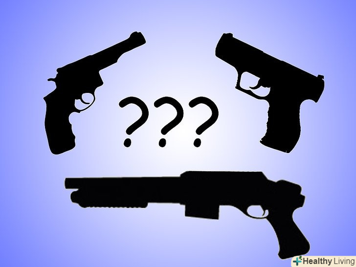 Знайте різновиди зброї. неможливо в подібній статті описати кожну різновид, проте нижче представлені найпоширеніші у продажу види на даний момент.- Револьвери. Їх часто ласкаво називають барабанними або шестизарядниками. Револьвери Дикого Заходу були шестизарядними пістолетами одиночної дії. У наш час все ще можна придбати подібні, проте з додатковою подвійною дією або ж пістолети одиночної/подвійної дії на 5, 6 і навіть кілька на 7, 8 і 10 патронів.
