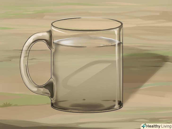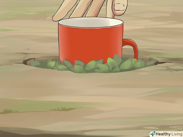 Помістіть стаканчик, кухоль або флягу в центр кожної ямки.- Якщо у вас є довга пластикова трубка, ви можете помістити її на дно склянки і вивести назовні. Таким чином, ви зможете всмоктувати воду з трубки, не розбираючи конструкцію.