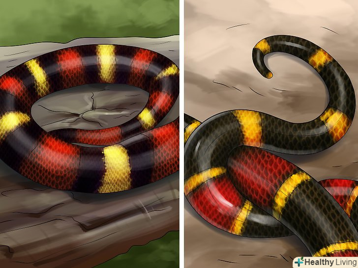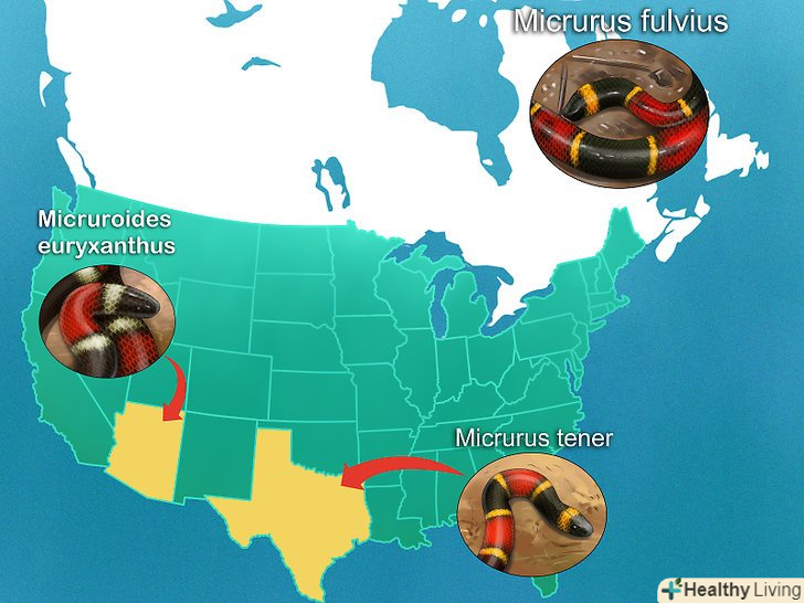 Не забувайте, що ці правила застосовні тільки до змій в Сполучених Штатах. поради в цій статті можна з упевненістю застосовувати до коралових аспідів, що мешкають в Північній Америці: Арлекіновий кораловий аспід (Східний або звичайний кораловий аспід), Micrurus Tener (Техаський кораловий аспід) і Micruroides euryxanthus (Арізонський кораловий аспід), поширені в Південній і західній частині Сполучених Штатів.- На жаль, в інших країнах світу забарвлення може кардинально відрізнятися і, не знаючи точного виду, не можна робити ніяких припущень щодо отруйності змії.