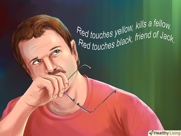 Запам'ятайте рими, щоб навчитися відрізняти одну змію від іншої. Люди, які проживають в регіонах, де водиться кораловий аспід і поперечнополосатая Королівська змія придумали запам'ятовуються рими, завдяки яким можна відрізнити одну змію від іншої:- Червоний з жовтим – смерть обіцяє, а червоний з чорним – не шкодить.