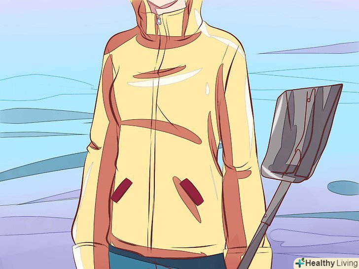 Переконайтеся, що у вас є потрібні речі та обладнання. тепла непромокаючий одяг життєво необхідна в разі, якщо ви під відкритим небом в дикій місцевості. Подумайте над тим, щоб зняти один або два нижніх шари одягу перед початком роботи, адже тоді у вас буде у що переодягнутися, якщо ви спітнієте під час копання. [6] що стосується обладнання, наявність однієї або двох компактних лопат для снігу значно прискорить і спростить процес побудови печери. Джерело світла, що не виробляє диму корисний в разі ночівлі, але свічка або інший маленький джерело вогню може бути використаний, якщо ви вирішите зробити вентиляційний отвір.- Вентиляційні отвори будуть розглянуті в цій статті пізніше.