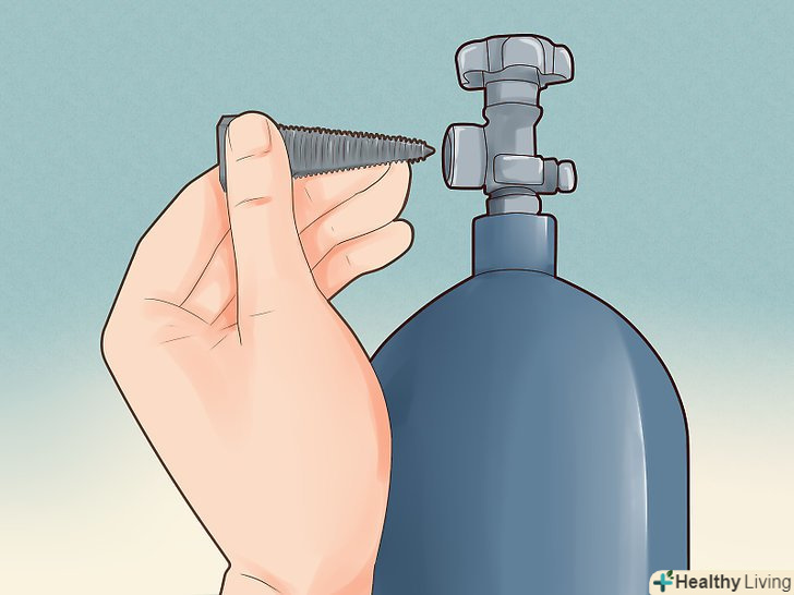 Надіньте заглушки на отвір газового балона. використовуйте при цьому ті кінці заглушок, які знаходяться далі від шланга. Після того як ви нагрієте балон, в шланг почне надходити пар, який потім буде конденсуватися в прісну воду. [9]- Щільно закріпіть заглушки, щоб не було течі.