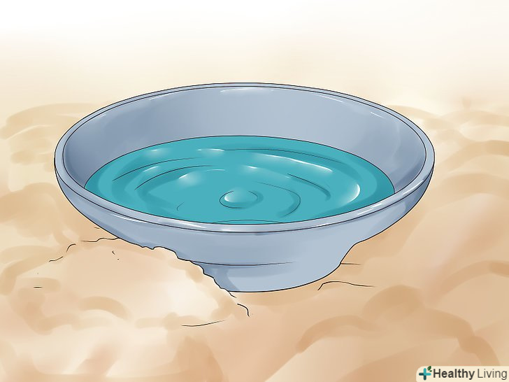 Зробіть гірку піску і зарийте в неї шланг. Таким чином ви закріпіть на місці шланг, поки по ньому буде стікати свіжа вода. Кінець шланга повинен залишатися вільним, щоб ви могли зібрати воду. [10]- Не закопуйте балон і заглушки. Вони повинні залишатися на поверхні, щоб ви могли спостерігати, чи немає течі.
