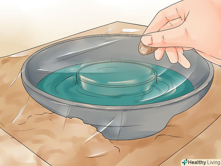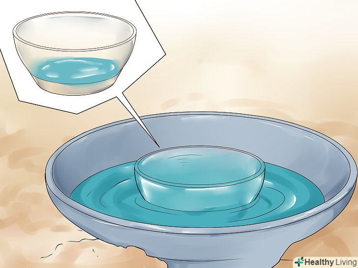 Зберіть солону воду в миску або іншу ємність. не заповнюйте миску до кінця. Вам знадобиться трохи вільного місця зверху для того, щоб солона вода не виплеснулася в приймач прісної води. [1]- Миска або інша ємність повинні бути водонепроникними. Якщо миска буде протікати, солона вода просочиться з неї, перш ніж утворюється пар, який потім сконденсується в прісну воду.
