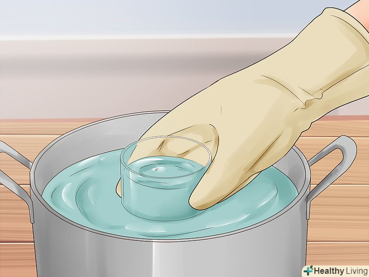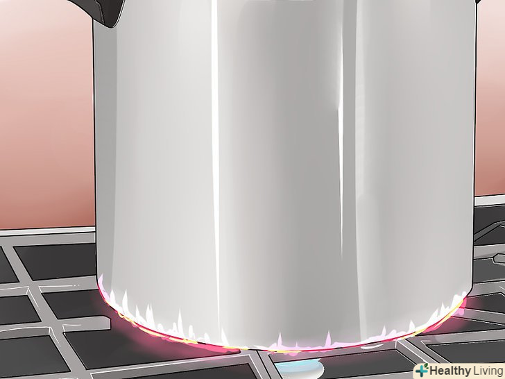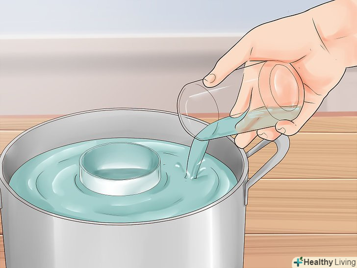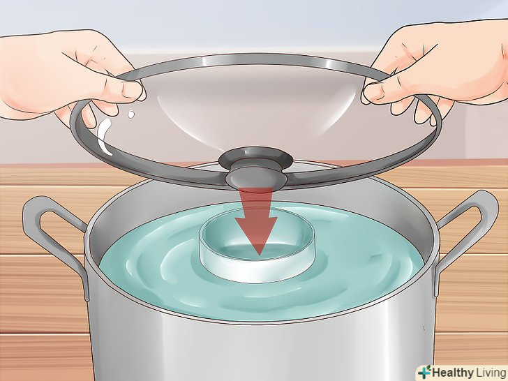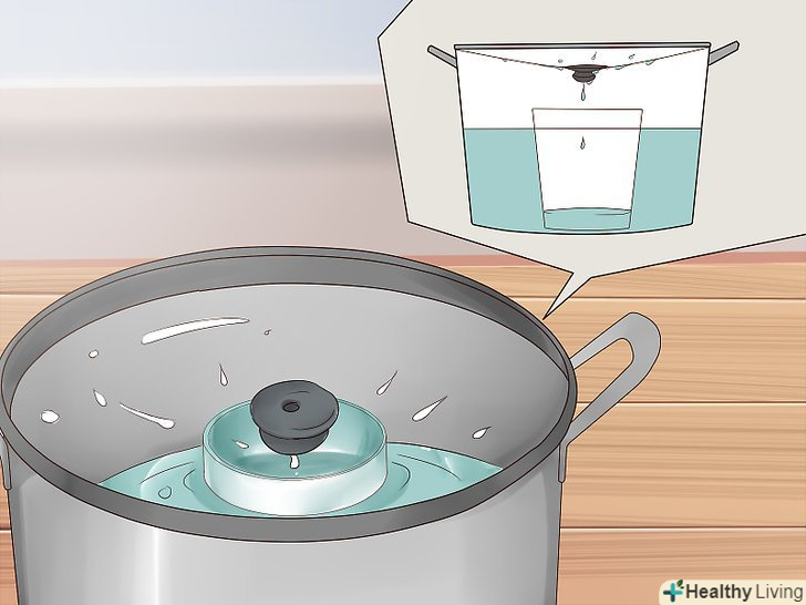 Доведіть воду до повільного кипіння. простежте, щоб вода повільно кипіла на слабкому вогні. Якщо солона вода буде бурхливо кипіти, вона може розплескатися і потрапити в стакан. При занадто сильному вогні стакан може тріснути.- Якщо вода буде кипіти занадто сильно і бурхливо, стакан може зрушити з центру каструлі в сторону від ручки на кришці.