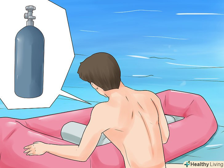 Дістаньте з рятувального плоту газовий балон. відкрийте його і заповніть морською водою. Відфільтровуйте воду через тканину, щоб в балон не потрапило занадто багато піску та іншого бруду. [7]- Не заповнюйте балон доверху, інакше вода буде вихлюпуватися з нього.