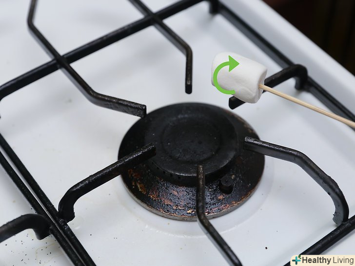 Спробуйте посмажити маршмеллоу на газовій плиті. цей метод дозволить вам насолодитися процесом приготування, проте він не позбавлений і деяких недоліків. Далеко не завжди виходить рівномірно посмажити маршмеллоу над газовою конфоркою, і якщо ви перестараєтеся, то пастилка може потекти і забруднити плиту. Тримайте пастилку над краєм конфорки, щоб вона не залила пальник і інші важливі деталі.- Пастилки можна насаджувати на вилку, але врахуйте, що вона може почорніти від високої температури. І будьте обережні, щоб не обпектися.