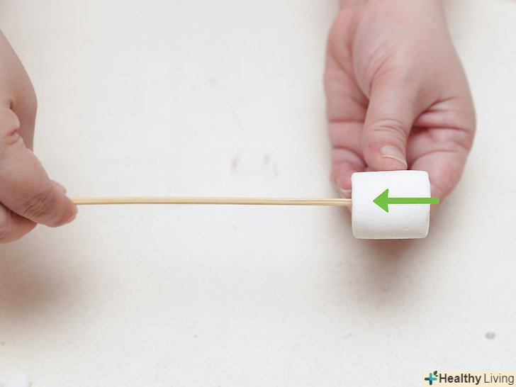 Насадіть пастилку на шампур. щоб пастилка не зісковзнула, шампур повинен проткнути її наскрізь. Якщо маршмеллоу досить вільно ковзає уздовж шампура, не нахиляйте його вниз вільним кінцем.- Можна насадити на шампур відразу кілька пастилок, проте зручніше смажити їх по одній.