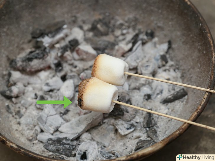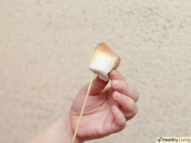 Маршмеллоу може підгоріти, якщо його смажити над відкритим вогнем. у цьому випадку пастилка може навіть спалахнути. Полум'я нескладно задути, проте в результаті пастилка покриється чорною вугільною кіркою. Намагайтеся не допускати цього.- Якщо пастилка загорілася, то не трясіть палицю і не смикайте нею. Як не дивно це звучить, палаюча розплавлена пастилка може заподіяти досить болісний опік. [3]