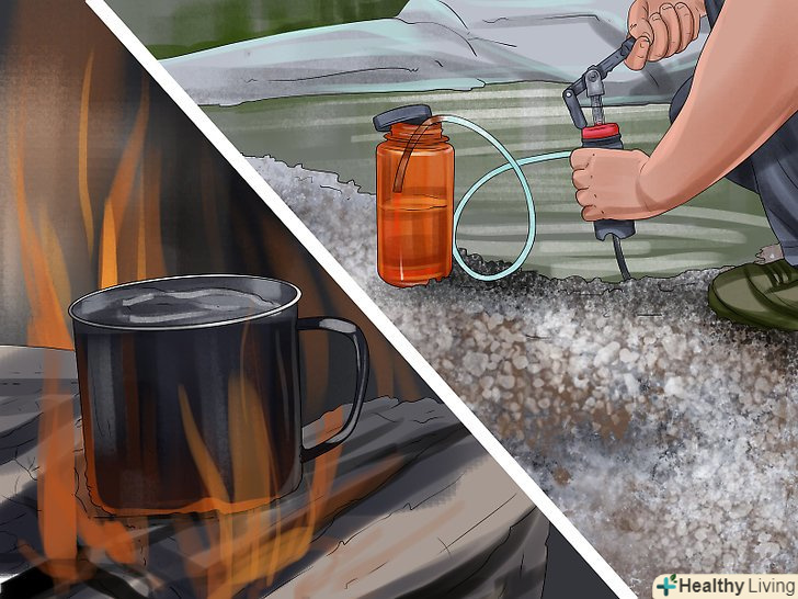 - Можна також зробити фільтр для води. Фільтруйте воду за допомогою бандани або іншої тканини, а потім пропускайте її через спеціальний фільтр для води. Фільтр повинен блокувати частинки розміром не більше 1-2 мікрон. Чим менше це значення, тим краще фільтр і тим повільніше вода буде проходити через фільтр.