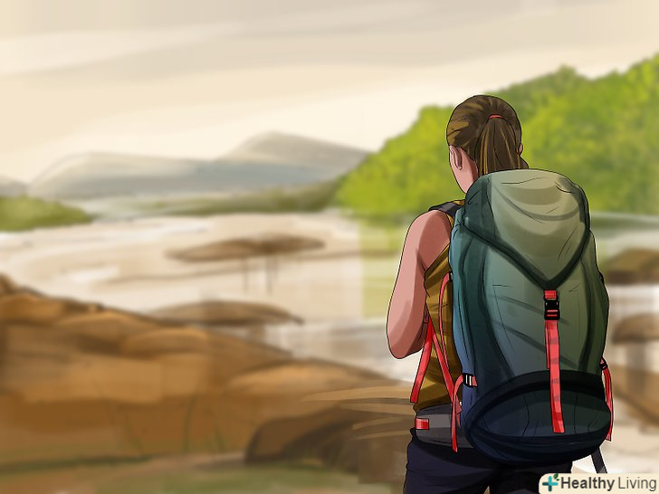Складіть всі необхідні речі в рюкзак, який буде легко нести. життя в дикій природі передбачає постійне дослідження навколишнього середовища і добування їжі. Вам потрібно буде зберігати багато речей у своєму житлі, але вам також потрібно буде вирішити, які речі ви будете носити з собою. Купіть надійний похідний рюкзак і беріть його з собою в кожну вилазку.- Складіть рюкзак заздалегідь, щоб зрозуміти, скільки ваги ви можете забрати на собі. Навчіться упаковувати рюкзак максимально, зберігаючи здатність нести його. Навіть навички складання рюкзака знадобляться вам в дикій природі.