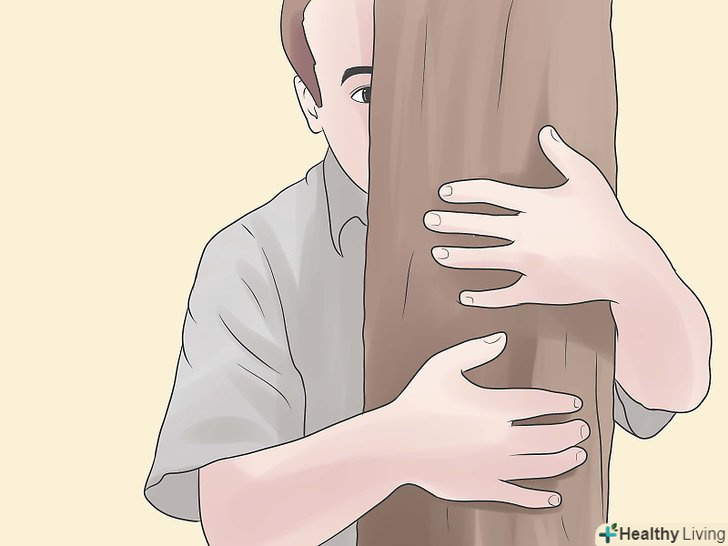 Слідкуйте, щоб щось розділяло вас і роздратованого слона. швидко Озирніться навколо, щоб побачити чи можете ви сховатися за чимось великим і використовувати це щось в якості щита. Наприклад, транспортний засіб, будівля, купа щебеню, велике дерево і т.д. у деяких випадках, можна залізти всередину дерева, якщо це можливо. Саме так роблять габонські мисливці, прослизають до коріння болотних дерев, достатніх для захисту від нападу слона. [2]- Якщо ви сховалися десь, знайте, що ви повинні сидіти абсолютно тихо і спокійно, у слонів гострий слух. [3]