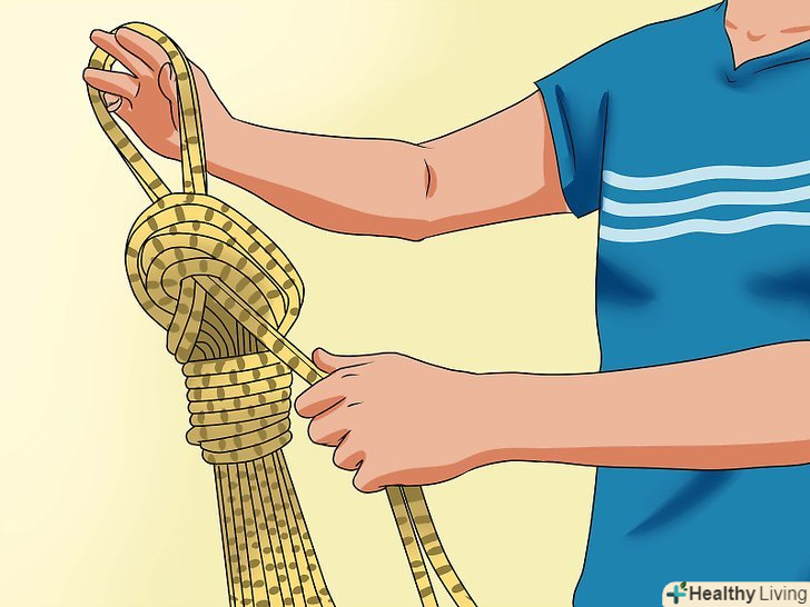 Тримайте обидві жили мотузки у вашій правій руці, розведіть руки в сторони. після цього візьміть обидві жили мотузки і іншою рукою.