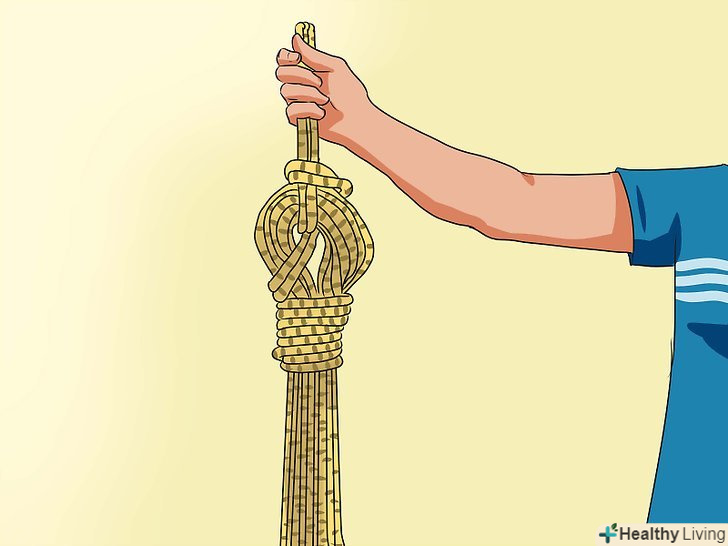 Знайдіть кінці мотузки. Обмотайте їх навколо мотка нижче руки, з якої він звисає; намотуйте мотузку якомога тугіше.