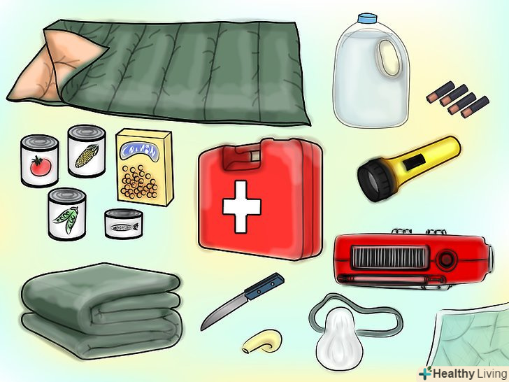 Запасіться іншими предметами першої необхідності. вам напевно знадобляться працюючі від батарейок ліхтарики (по одному на кожну людину) і радіоприймач. Подбайте також про запас батарейок. Майте достатню кількість теплих ковдр, спальних мішків і чистого одягу для всіх, хто знаходиться в будинку. [5]