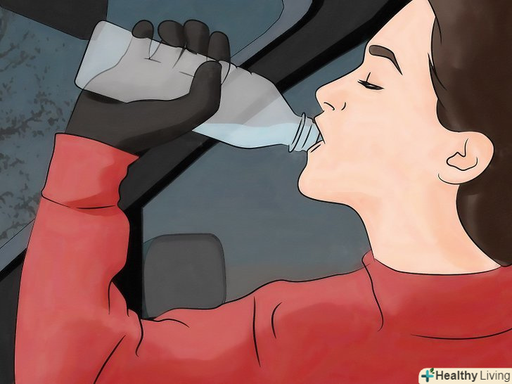 Запобігайте зневодненню організму. це допоможе вам уникнути гіпотермії. Якщо у вас є при собі пляшка з водою, пийте з неї. Ні в якому разі не їжте сніг, оскільки це знизить температуру вашого тіла. Постарайтеся знайти способи розтопити його.