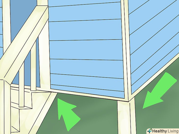 Перевірте простір під будинком і навколо. шукайте дірки, місця, де гримучі змії можуть проникнути під будинок і оселитися там, заткніть або закрийте дошками ці області. Місце під будинком-ідеальне середовище для змій, тому постарайтеся перешкодити цьому. Перевірте стіни, фундамент, сходи і т. д.