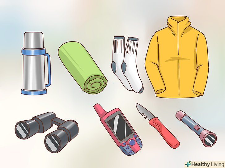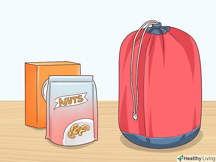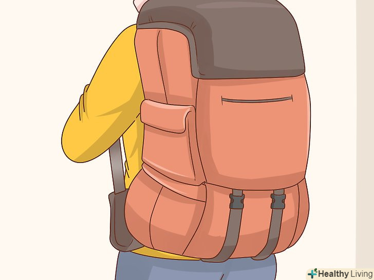 Виберіть рюкзак. якщо ви подорожуєте пішки, ви оціните найлегший рюкзак. Тому варто віддати перевагу маленькому легкому рюкзаку, в якому помістяться всі ваші речі. Якщо ви збираєтеся відправитися в похід ненадовго, ви цілком зможете вмістити всі речі в маленькому рюкзаку, але якщо ви збираєтеся в похід з ночівлею (або збираєтеся зайнятися альпінізмом), вам знадобиться рюкзак побільше, в який поміститься все додаткове спорядження (спальний мішок, намет), а також багато їжі і води.- Обсяг рюкзаків вимірюється в літрах, так що у продажу можна знайти рюкзаки ємністю від 25 до 90 літрів. Середній обсяг похідного рюкзака — для денного походу) - 25-40 літрів. Середній обсяг для похідного рюкзака на 5 і більше днів-65-90 літрів. [1]