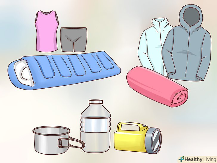 Зберіть всі необхідні речі. коли справа стосується походів, найкраще брати тільки предмети першої необхідності. Можливо, у вас з'явиться спокуса взяти з собою фотоапарат, щоденник, улюблену подушку, але додаткові непотрібні речі тільки додадуть ваги вашої ноші. Зберіть тільки ті речі, які необхідні для походу. Щоб дізнатися, що саме варто з собою взяти, заздалегідь знайдіть інформацію в Інтернеті, візьміть до уваги серйозність і тривалість походу, кількість ночей, а також погодні умови.- Подумайте про те, щоб взяти з собою найлегше, але міцне спорядження, особливо якщо ви збираєтеся в довгий похід. Наприклад, якщо вам потрібно взяти з собою спальний мішок, найкраще вибрати найлегший і компактний мішок, який буде важити всього пару кілограмів, ніж велике пухнасте ковдру, яке займе багато місця і буде занадто важким. Необхідно враховувати погоду, клімат і місцевість, де ви збираєтеся подорожувати. У деяких випадках можуть знадобитися більш громіздкі предмети.