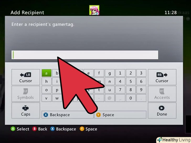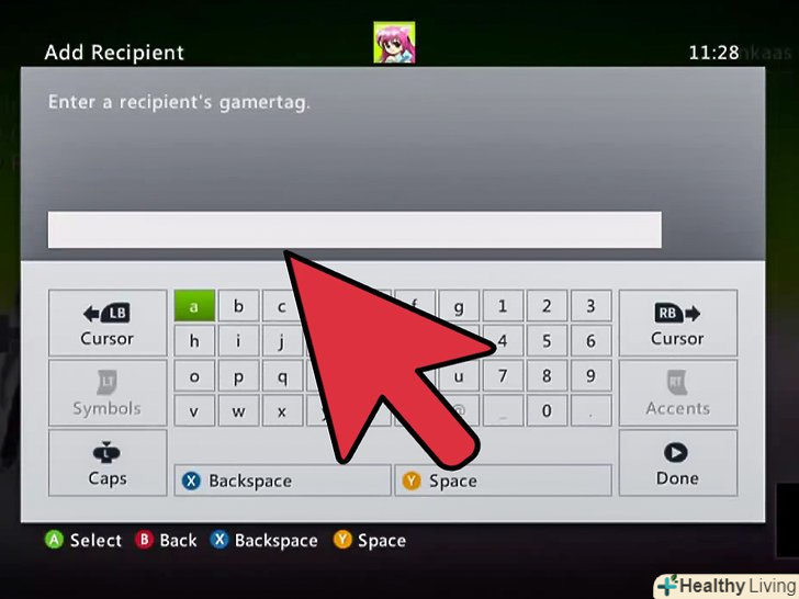 3. Виконайте пошук користувача за тегом гравця.у меню "друзі" виберіть "Додати друга". Скористайтеся віртуальною клавіатурою (або при бажанні пристроєм введення, що підключається через USB), щоб надрукувати тег гравця, якого хочете додати в друзі. Натисніть "Готово", коли закінчите введення.