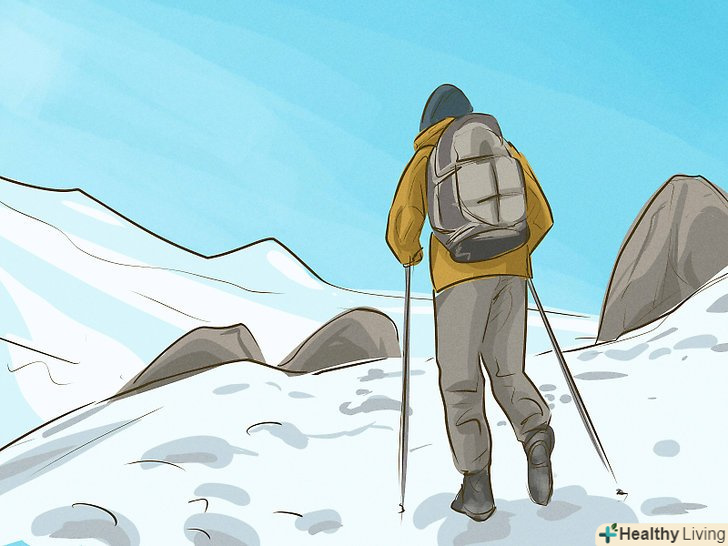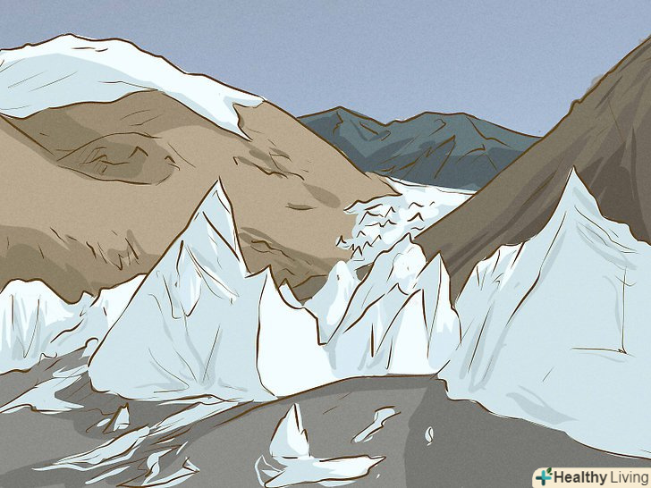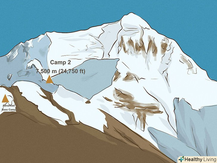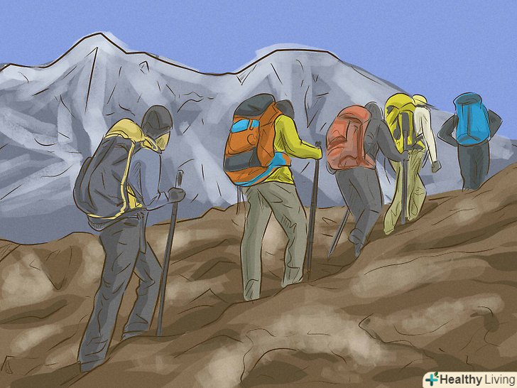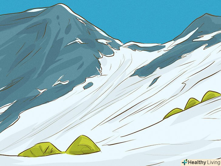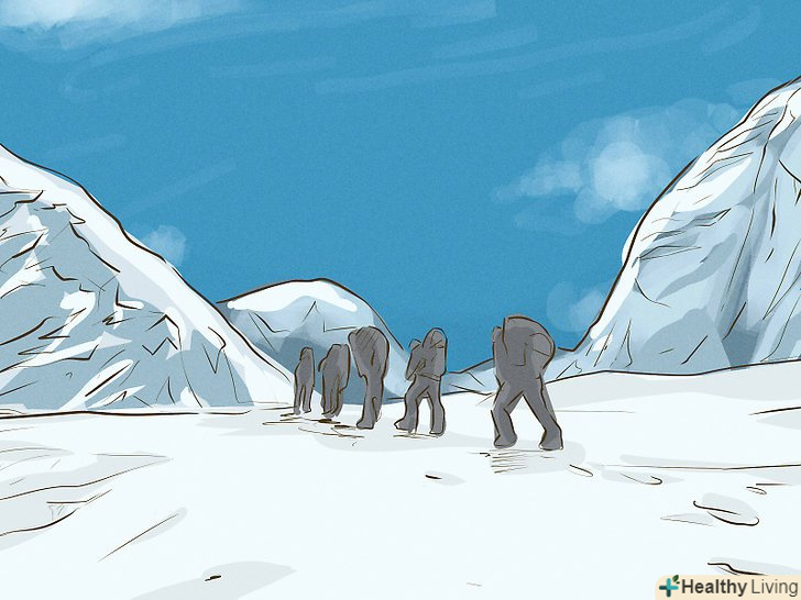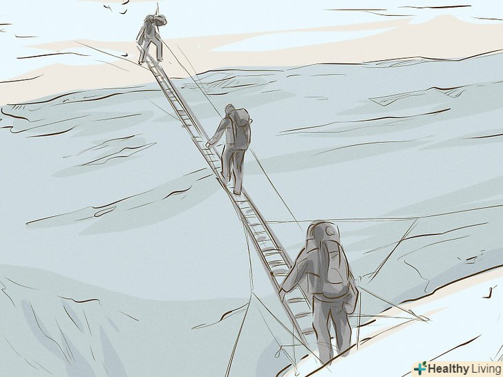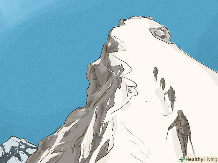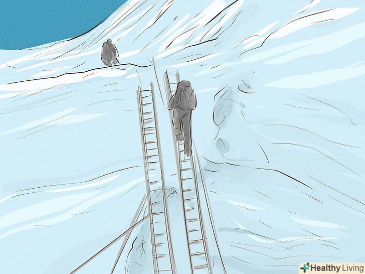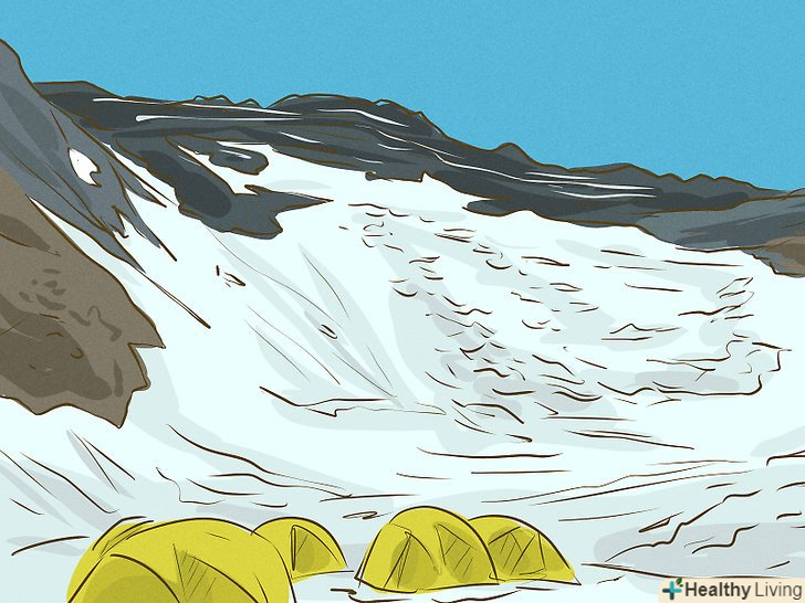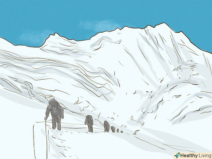 Знайте про небезпеки, які очікують вас на шляху до вершини. найпоширеніші причини смерті в горах-падіння з льодовика, нестача кисню, висотна хвороба, суворі погодні умови і обмороження. Вчіться на помилках інших альпіністів. Запам'ятайте симптоми висотної хвороби, дізнайтеся, як її запобігти, а також освойте прийоми першої допомоги. [3]