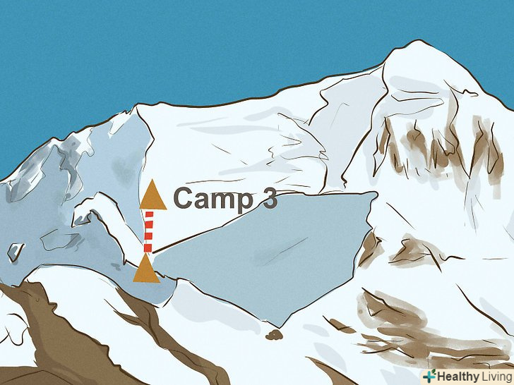Перехід через льодопад Кхумбу. Льодопад — це знаходяться в постійному русі крижані брили і тріщини. Переходити льодопад краще ще до світанку, коли температура повітря низька і крижини міцно приморожені один до одного. [6] вам належить піднятися до Базового табору I, розташованого на висоті 6065 м.