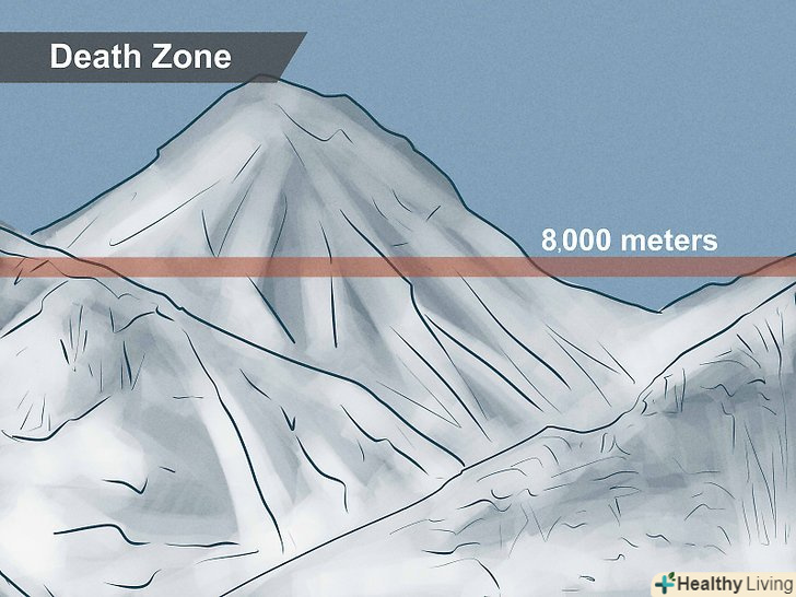 Підготуйтеся до зустрічі з зоною смерті. на висоті 8000 м на Евересті починається так звана "зона смерті", де вижити досить важко. Будь-яка відкрита частина тіла негайно обморожується. Температури дуже низькі, тому лід стає надзвичайно слизьким. Рівень кисню всього 337 мбар, що становить третину фізіологічної норми. [4] умови в зоні смерті настільки суворі, що більшості альпіністів потрібно близько 12 годин, щоб подолати відстань 1,72 км від Південного сідла до вершини. Щоб вижити в зоні смерті, потрібно 50-денна акліматизація в умовах високогір'я. Без неї людина втрачає свідомість в лічені хвилини.- Оскільки вершина Евересту недоступна для вертольотів, якщо ви не зможете йти, вас залишать там вмирати. На шляху до вершини нерідко можна побачити трупи альпіністів.
