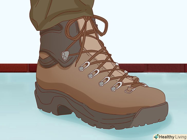 Взуйтесь в попередньоРізношенні туристичні черевики , якщо ви плануєте ходити в піші маршрути. завжди надягайте черевики на носок і не беріть в похід нову, неношену взуття — це, швидше за все, скінчиться пухирями і болями в ногах. Виберіть шкарпетки, досить довгі для того, щоб черевики не натирали вам щиколотки при ходьбі. Ніколи не взувайтеся в піший маршрут в шльопанці (або іншу безпідставну взуття) — вони погано захищають ноги від каменів, не підтримують ногу і легко можуть зламатися. [20]- Якщо ви купили нову пару черевиків, ходіть в них по дому кожен день протягом тижня перед тим, як вирушати в них в похід, і зробіть в них кілька невеликих прогулянок. Так ви зможете розносити їх, перш ніж підете в подорож.