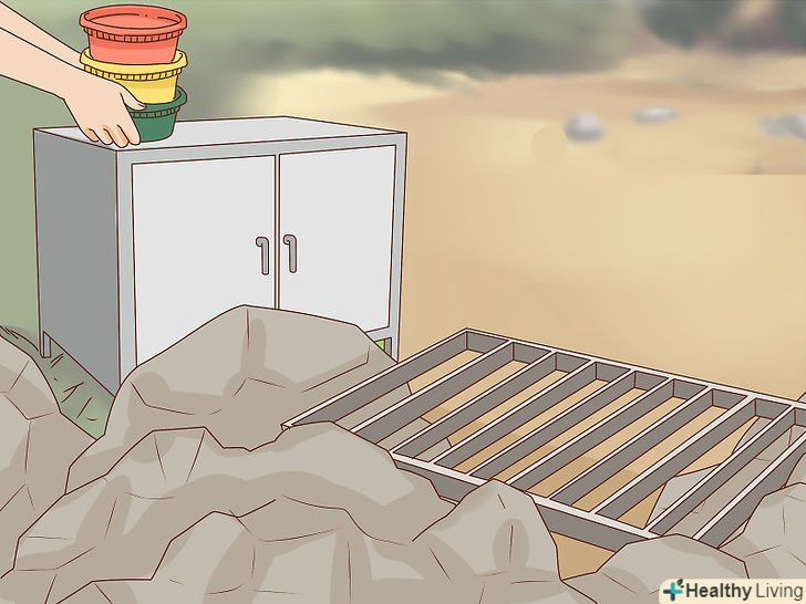 Огляньте навколишню місцевість, щоб знайти воду, дрова і туалет. як тільки ви поставили намет, пройдіться навколо вашого табору, щоб визначити, де знаходиться все необхідне. Якщо ви розташувалися не в кемпінгу, дуже важливо зрозуміти, куди ви будете ходити в туалет і де брати воду і дрова, до заходу сонця. [24]- Коли стемніє, щоб ходити навколо табору, вам знадобиться ліхтарик. Тоді буде дуже корисно заздалегідь знати, в якому напрямку йти з тією чи іншою метою.
