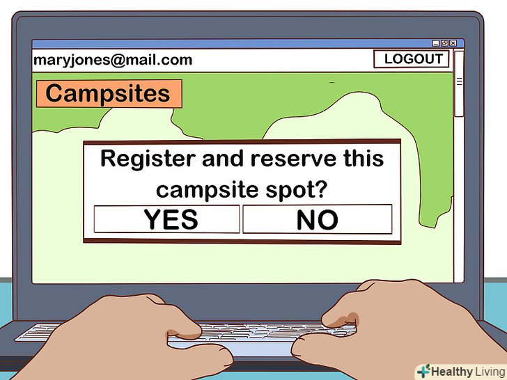 Забронюйте місце в кемпінгу, якщо це потрібно. можливо, Вам потрібно буде частково або повністю оплатити кемпінг за кілька тижнів або навіть місяців, особливо якщо ви отруюєтеся туди влітку або на травневі свята. Як тільки ви визначилися з місцем і датами поїздки і зрозуміли, скільки людина їде з вами, відразу ж забронюйте місце! [5]- Майже у всіх кемпінгів є веб-сайт, через який ви можете забронювати місце. Якщо у вас виникли питання, зателефонуйте в кемпінг до того, як робити бронювання.