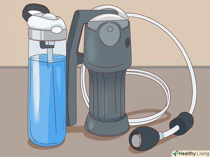 Не забудьте взяти з собою воду абоОчищувач води щоб Уникнути зневоднення . якщо ви зупинитеся в кемпінгу, швидше за все, там буде джерело питної води, де ви зможете наповнити свої пляшки. Якщо ж такого джерела в кемпінгу немає або ваш табір знаходиться серед лісу, подумайте про придбання компактної системи фільтрації води, щоб мати можливість пити з природних джерел: струмків, озер і ставків. [10]- Завжди дізнавайтеся заздалегідь, що необхідно зробити, щоб зробити воду, набрану з природного джерела, безпечною для пиття. У деяких районах воду необхідно кип'ятити після того, як ви пропустите її через систему фільтрації; в інших необхідно додавати в воду певні хімічні речовини, наприклад йод.