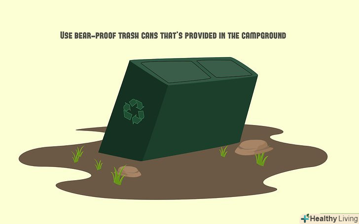 Сховайте їжу у відповідному укритті або контейнері. це найпростіший спосіб, якщо місце, в якому ви ховаєте їжу, безпечно і захищено від ведмедів. Приклади способів зберігання продуктів харчування, які не дають доступ ведмедям:- В металевих харчових шафках. Деякі кемпінги надають металеві харчові шафки. Використовуйте їх. Якщо вони переповнені, попросіть сусідів по кемпінгу поділитися деяким простором.