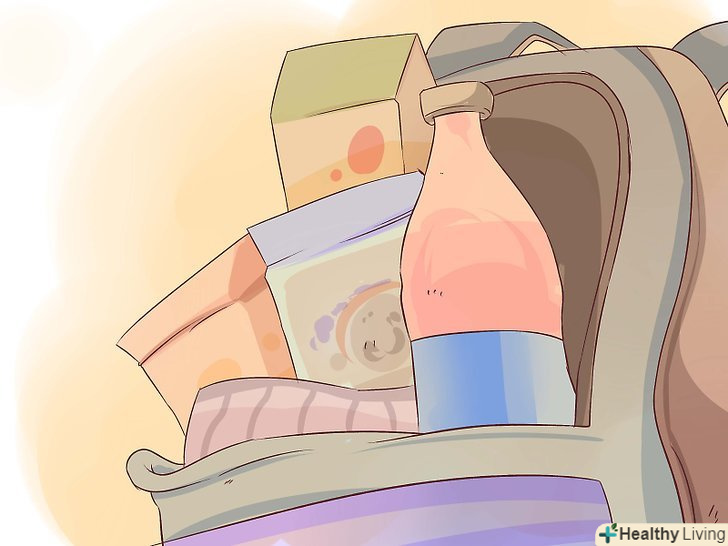 Візьміть з собою достатню кількість легкої і калорійної їжі. туристичні походи не мають на увазі підкріплення шашликом. Якщо ви подорожуєте без нічого, візьміть консервовані і сублімовані продукти (тушонку, сухе молоко, Супи швидкого приготування, крекери). Також ви можете самостійно зневоднити продукти . Макарони є поширеною їжею під час походів.- Кожен член групи повинен нести свій запас їжі, але готувати її потрібно спільно. Візьміть калорійні продукти з високим вмістом білка, наприклад, горіхи, сухофрукти, родзинки, арахіс. [4]