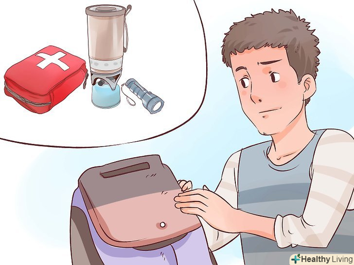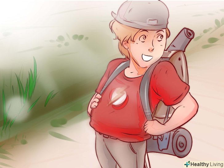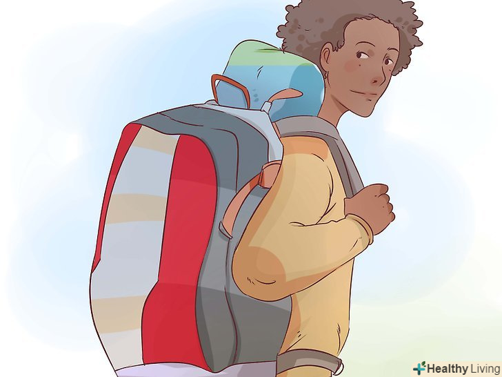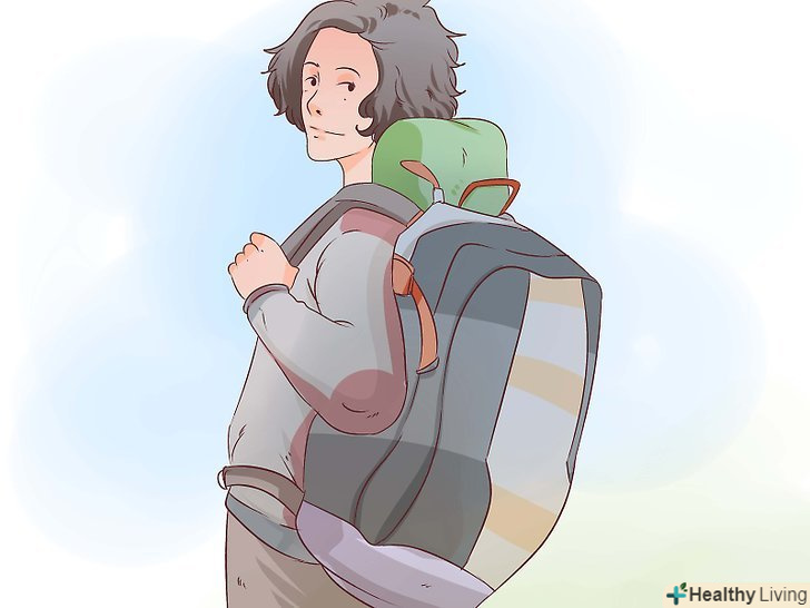 Роздобудьте міцний рюкзак, який відповідає параметрам вашого тіла. Рюкзаки для походів повинні бути досить міцними, щоб витримати значну вагу, але і досить легкими, щоб ви не дуже втомлювалися. Шукайте рюкзак з внутрішнім каркасом і з кріпильними ременями на рівні талії і грудей, щоб належним чином зафіксувати рюкзак на вашому тілі.- Рюкзаки для походів продаються в магазинах спортивних товарів і їх можна підібрати по зростанню і параметрам тіла. Краще приміряти рюкзак, щоб переконатися, що він підходить вам.