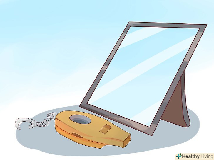 Візьміть свисток і дзеркало. ці два предмети повинен мати кожен член групи на випадок виникнення надзвичайної ситуації. Якщо турист відстав від групи, свисток допоможе іншим членам групи знайти його. У разі більш серйозної ситуації дзеркала можуть бути використані для подачі сигналів (за рахунок відбиття сонячного світла) аварійно-рятувальним командам.