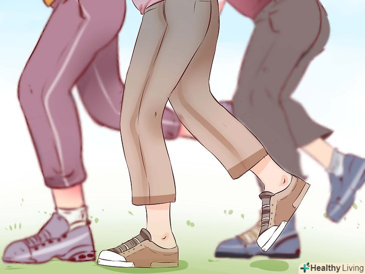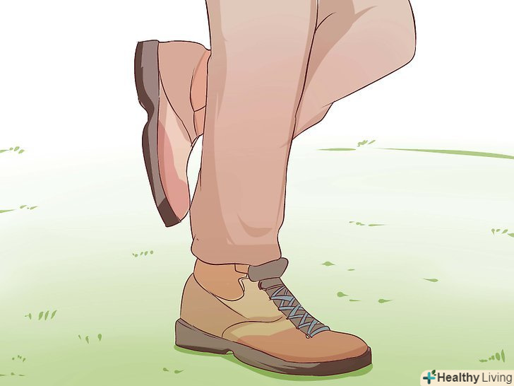 Виберіть відповідне взуття. якщо ви збираєтеся пройти багато кілометрів, вам необхідна міцна, легка і зручне взуття. Тому зупиніть вибір на непромокальних і міцних високих черевиках.- Ніколи не ходіть в похід в кросівках або сандалях. Часом для цих цілей підійдуть тенісні туфлі, але переконайтеся, що вони відповідають місцевості, по якій ви збираєтеся подорожувати (тому краще здійснювати походи в високих черевиках).