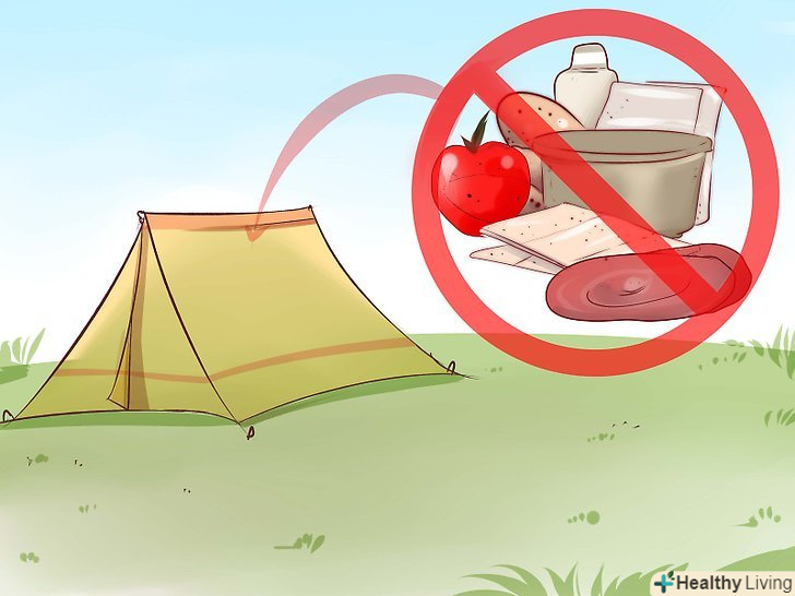 Не тримайте їжу в наметі. щоб убезпечити себе від ведмедів, зберігайте продукти харчування подалі від намету. Навіть якщо в обраній вами місцевості ведмедів немає, важливо захистити себе від цікавих тварин, які захочуть щось поцупити.- Якщо в обраній вами місцевості мешкають ведмеді, візьміть з собою сумку і мотузку, щоб підвішувати продукти харчування на дерево.