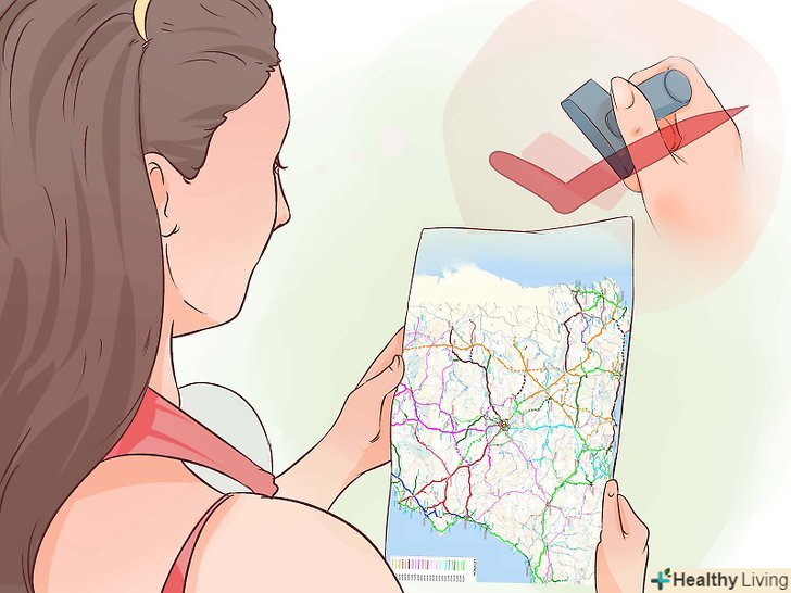 Візьміть детальну карту місцевості, по якій ви збираєтеся подорожувати. Карта має вирішальне значення для забезпечення захоплюючого і безпечного походу. Карти доступні в магазинах спортивних товарів або у адміністрації національних парків.- Дрібномасштабні карти знадобляться в коротких походах, а ось для довгих походів краще запастися великомасштабними картами, якщо ви вмієте їх читати .