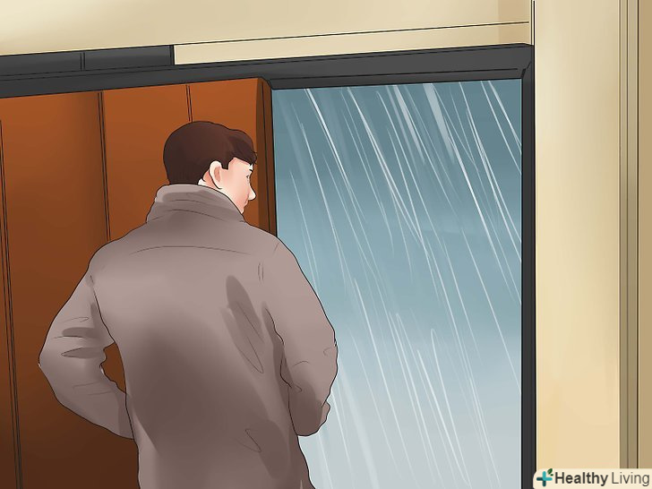 Знайдіть собі укриття в разі дощу або снігопаду. якщо почнеться дощ і у вас буде можливість сховатися від нього, обов'язково скористайтеся нею. Залишайтеся в укритті до повного закінчення опадів, якщо це можливо. [4]- Після дощу відразу ж переодягніться з промоклої одягу в суху. Часом буває просто неможливо не промокнути, але це означає, що вам необхідно якомога швидше переодягнутися в сухе. Саме тому важливо взяти з собою запасний одяг, яку можна буде на себе надіти.