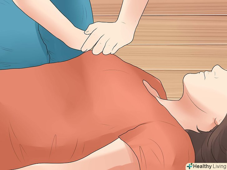 При необхідності проведіть серцево-легеневу реанімацію (зробіть штучне дихання і закритий масаж серця). [11] якщо потерпілий знаходиться без свідомості і у нього не прощупується пульс, проведіть серцево-легеневу реанімацію. Якщо ви не навчені тому, як правильно проводити таку реанімацію, надайте це тому, хто з нею знайомий, і викличте швидку допомогу або рятувальників.- Як тільки у потерпілого з'явиться пульс, відновиться дихання і реанімаційні дії більше не будуть потрібні, просто продовжуйте стежити за тим, щоб людині було тепло і комфортно до прибуття допомоги. [12]