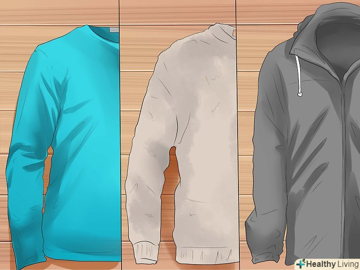 Надягаючи на себе шари одягу, використовуйте правило: «вологовідведення, тепло і вологозахист». любителі походів з'ясували, що певне поєднання тканин забезпечує тілу найкращий захист від холоду. [2]- Для першого шару одягу, прилеглого до шкіри, використовуйте речі з вологовідвідної тканини. Вона відводить вологу від тіла, коли ви потієте, тому тіло залишається сухим. Тому надіньте на себе комплект термобілизни з футболки з довгим рукавом і довгих штанів, зшитих зі спеціального поліестеру.