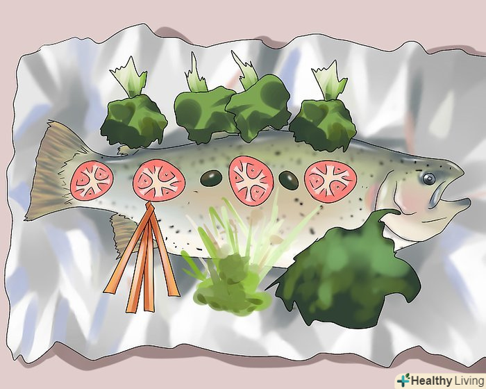 Загорніть рибу у фольгу або газету. так риба не розламається і знайде особливу соковитість і смак. З іншого боку, якщо ви не любите соковиту рибу зі смаком диму, то вам не підійде даний спосіб.- Навіть якщо ви загорнули рибу у фольгу або газету, не треба зменшувати вогонь, готуйте її на тому ж вогні, на якому готували б у відкритому вигляді!