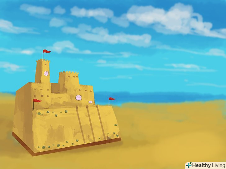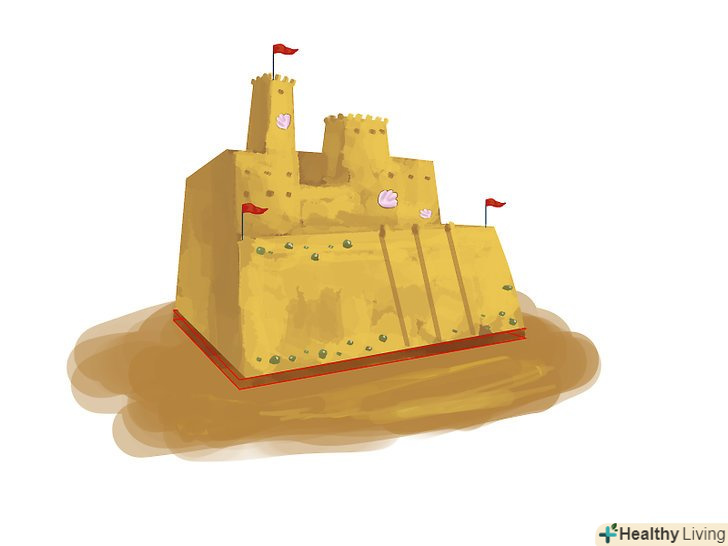 Приступайте до будівництва. найбільш важливий крок при будівництві будь – якого замку-це міцний фундамент. Без міцної основи ваш замок розвалиться, перш ніж ви зможете закінчити його. Щоб її зробити, розкладіть шар мокрого піску по тій області, на якій розташується ваш замок. Потім, утрамбуйте пісок. Ви можете зробити це, поплескавши по ньому руками, за допомогою лопатки, або навіть прокативши по ньому відром. Накладайте і утрамбовуйте шари до тих пір, поки у вас не вийде хороша, міцна основа, яка зможе витримати вагу вашого замку.