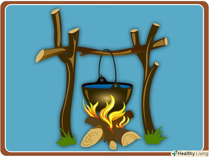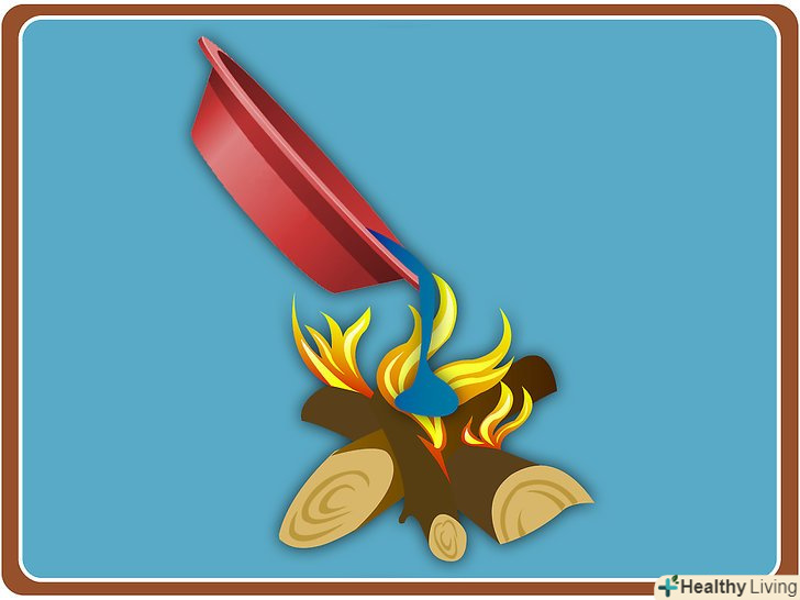 Віднесіть котел з водою за 60 метрів від вашого табору або річки, а потім виплесніть її на відкрите місце або залийте цією водою багаття.