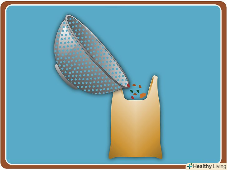 Злийте воду, що залишилася від миття посуду, пропустивши її через сито, щоб затримати всі шматочки їжі.