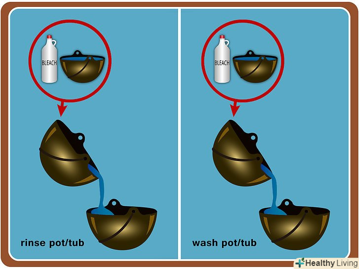 - Холодна вода для споліскування. У воду необхідно додати невелику кількість відбілювача або схожого речовини, яке знищило б бактерії (див.поради внизу статті).