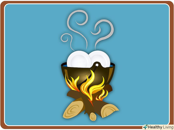 Закип'ятіть воду для миття посуду на багатті, поки їсте. набагато простіше мити посуд відразу після їжі, тому що інакше залишки їжі пристають до країв і тверднуть.
