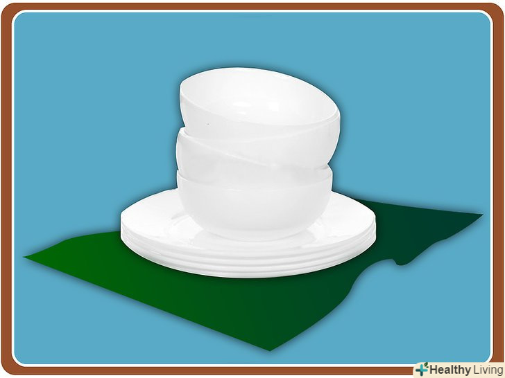 Щоб просушити посуд, викладіть її на чистий рушник на землі або на фольгу. Дайте посуді висохнути природним чином або протріть її паперовим рушником. Якщо ви хочете висушити посуд на свіжому повітрі, покладіть її в чистий сухий мішок з куліскою, зроблений з сітчастого матеріалу, і підвісьте на гілку дерева або в будь-яке інше місце так, щоб мішок з посудом нічого не торкався. Повітря і сонце висушать все досить швидко, і чистий посуд не буде стикатися з брудними поверхнями. Відбілювач випарується.