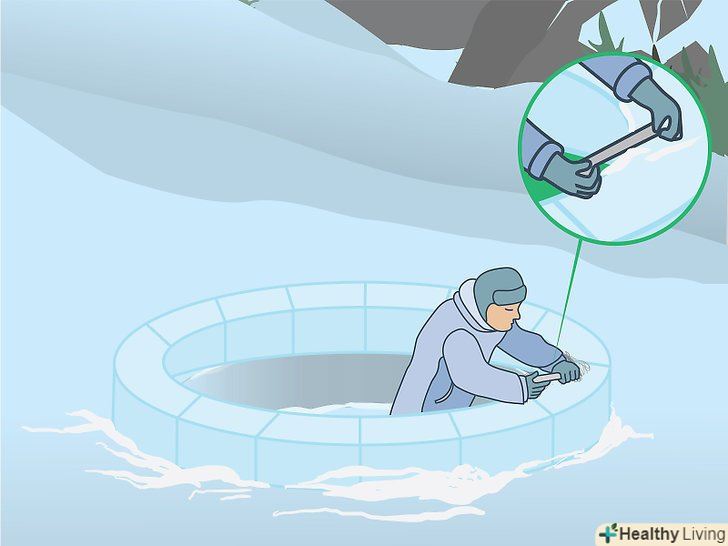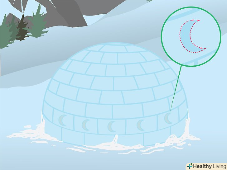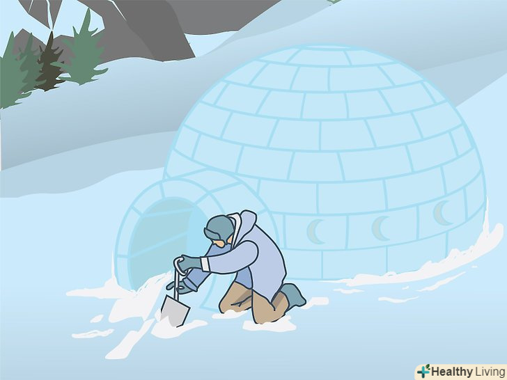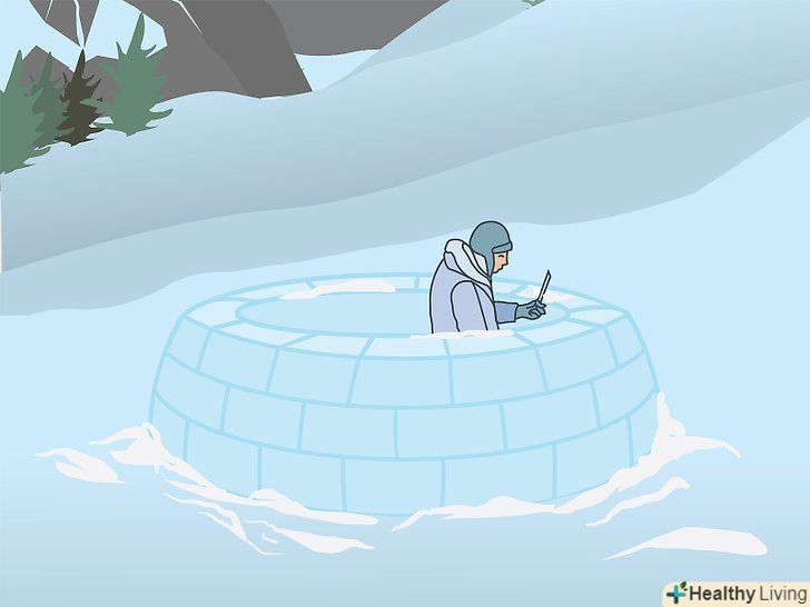 Виріжте вентиляційні отвори в стінах голку, щоб запобігти отруєнню вуглекислим газом (CO 2 ). виділяється вашим тілом тепло розтопить сніг на внутрішній поверхні стіни, і на ній утворюється щільна Снігова кірка, що не пропускає повітря. Ця кірка не випустить назовні видихається вами вуглекислий газ, і якщо в стінах не буде вентиляційних отворів, ви можете отруїтися їм. [16]- Щоб запобігти скупченню вуглекислого газу, виріжте в стелі або стіні голку маленькі отвори у формі півмісяця. [17]