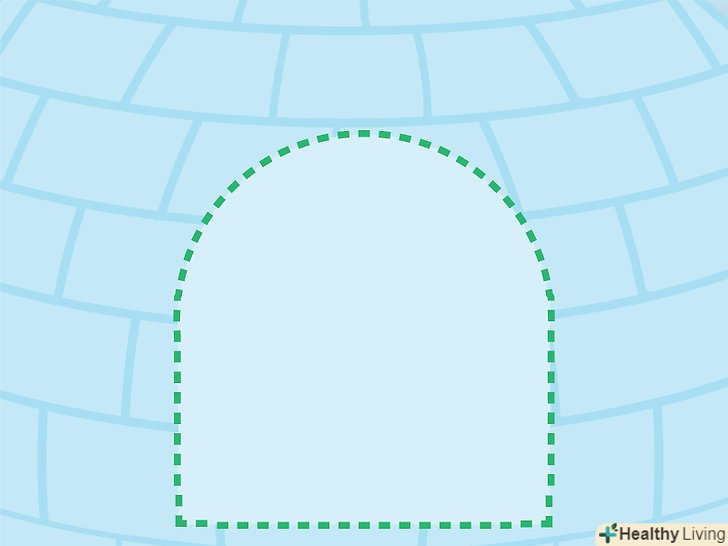 Виріжте вхід в голку. Тепер, коли зведені стіни і пророблені вентиляційні отвори, прийшла пора зробити вихід. Візьміть сніговий ніж або мачете і, присівши перед стіною, виріжте в нижньому ряду блоків прямокутний отвір так, щоб його верхній край знаходився на рівні ваших очей. Виконайте наскрізний отвір. [18]- Постарайтеся зберегти вирізаний блок, затягнувши його всередину голку. Він стане в нагоді вам для того, щоб підперти вхід.